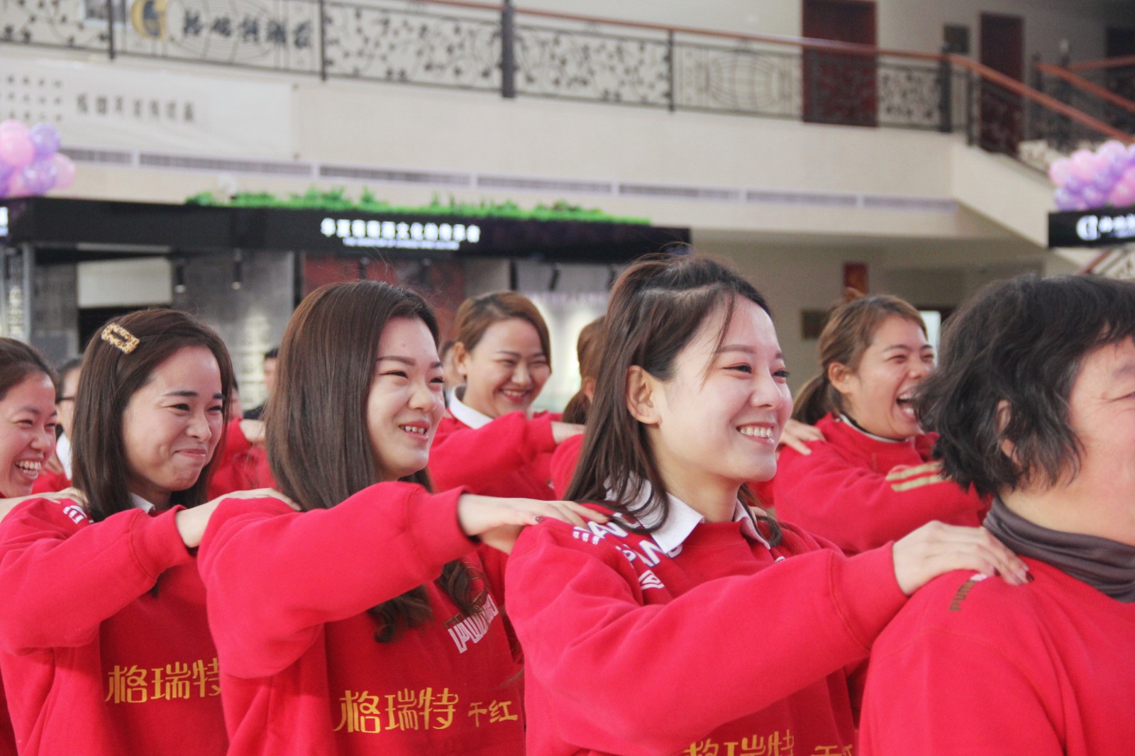 頒獎(jiǎng)之后,所有女神們圍成了一個(gè)同心圓,與相鄰伙伴手牽手,根據(jù)主持人的口令做出花開(kāi)與花謝的動(dòng)作,象征格瑞特酒莊團(tuán)結(jié)一致,并預(yù)祝格瑞特酒莊明天更加燦爛。