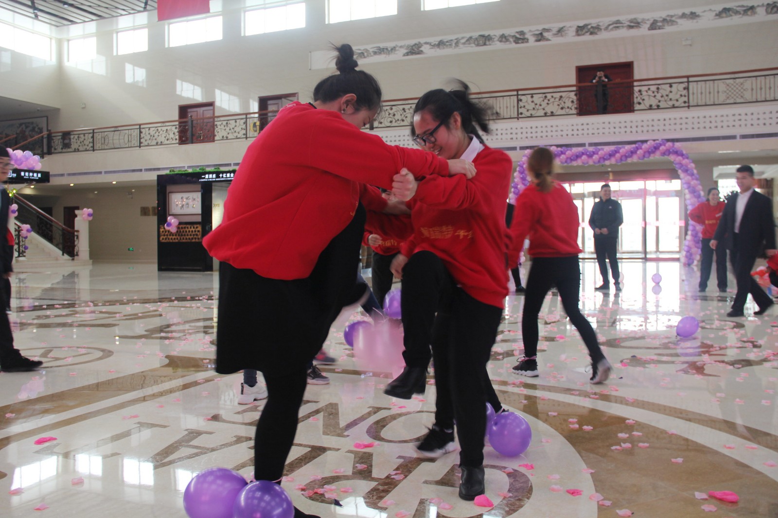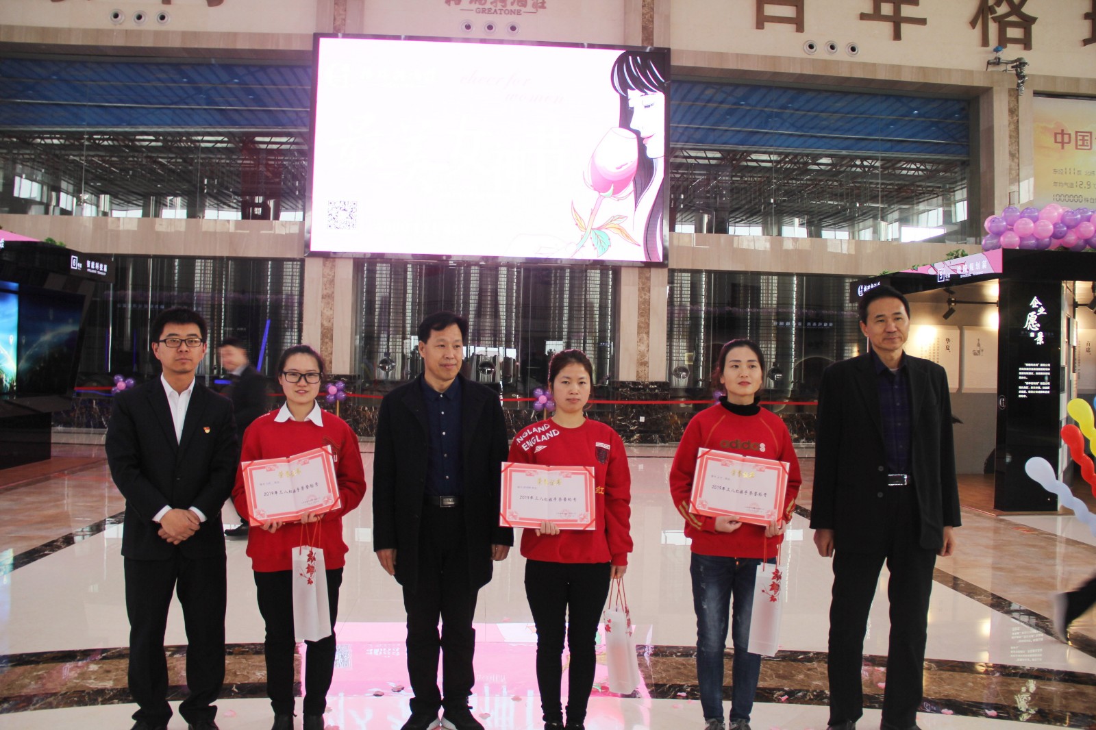 在3月8日上午9:00整,酒莊所有女同志穿著統(tǒng)一服裝齊聚格瑞特酒莊文化大廳,隨著開(kāi)場(chǎng)音樂(lè)的響起,“最美女神節(jié)”活動(dòng)正式拉開(kāi)了帷幕。主持人宣布格瑞特酒莊最美女神節(jié)活動(dòng)正式開(kāi)始,此次活動(dòng)總共有七項(xiàng)議程。