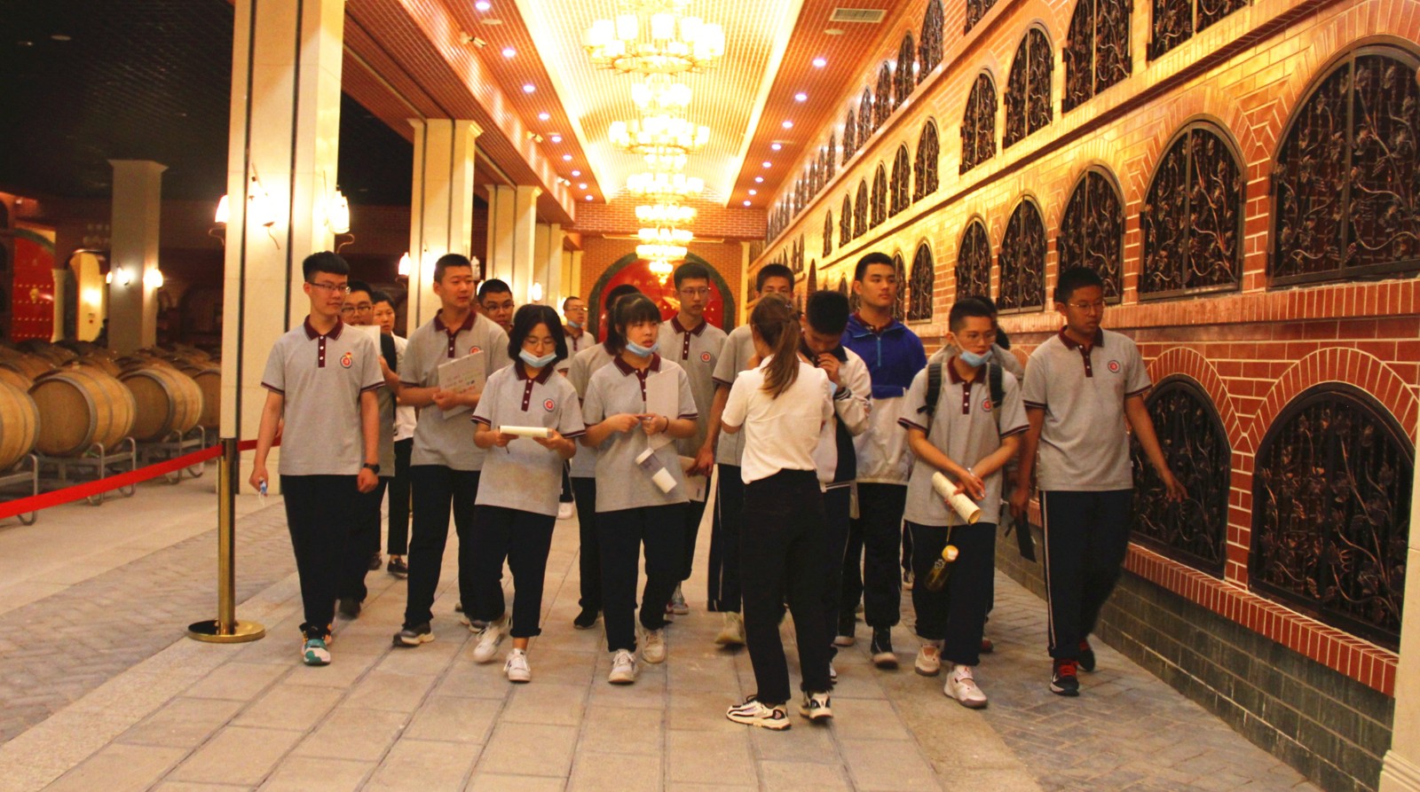 6月7日下午兩點(diǎn)半,東康一中的同學(xué)們和老師們來到格瑞特酒莊,進(jìn)行社會實踐活動。同學(xué)們被分成兩支隊伍,對酒莊內(nèi)的多處景觀進(jìn)行輪流參觀。