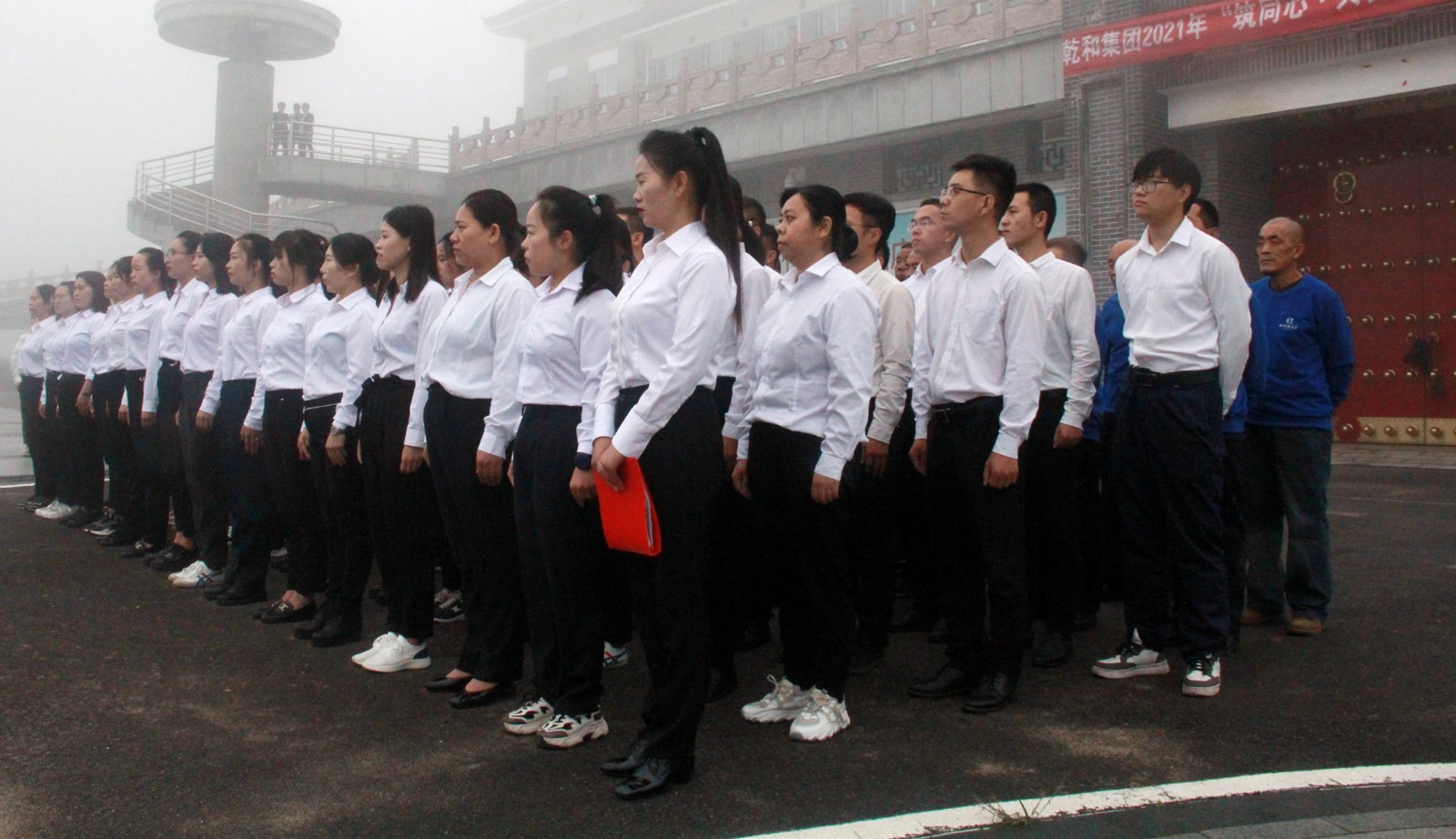 全體員工統(tǒng)一著裝、整齊列隊(duì),面對(duì)國(guó)旗肅立,行注目禮,伴隨著雄壯激昂的《義勇軍進(jìn)行曲》,鮮艷的五星紅旗冉冉升起。