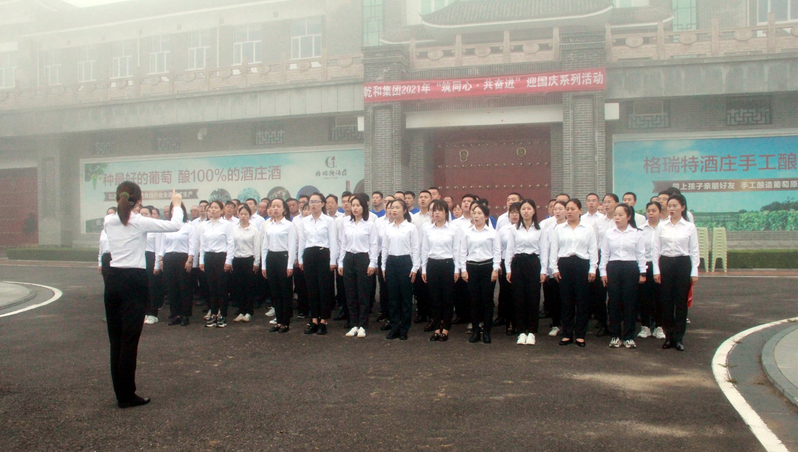 在國(guó)慶節(jié)來(lái)臨之際,為隆重?zé)崃业貞c祝中華人民共和國(guó)成立72周年,進(jìn)一步加強(qiáng)公司員工的團(tuán)隊(duì)凝聚力,弘揚(yáng)和培育民族精神,激發(fā)愛國(guó)主義情感,于9月30日早8點(diǎn)在格瑞特酒莊廣場(chǎng)開展“ 筑同心·共奮進(jìn) ”迎國(guó)慶系列活動(dòng)。格瑞特莊園全體人員參加。